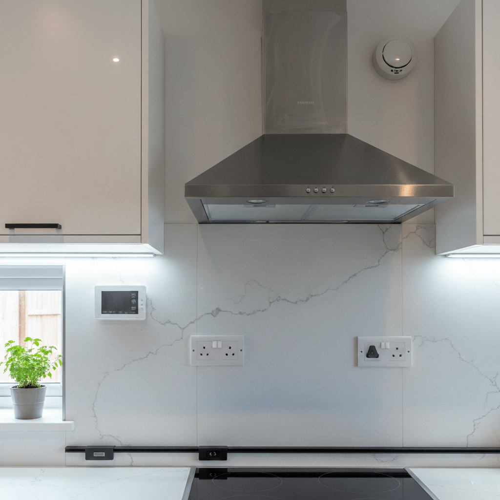 - Power outlets or switches on the backsplash