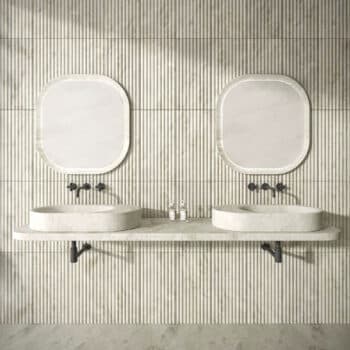 - Sculptural pieces that make the bath a true retreat.